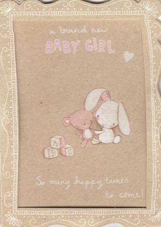 A lovley 3D card with the words "A brand new Baby Girl, so many happy times to come!" on the front and the following verse inside - "With lots of love and congratulations on your new bundle."