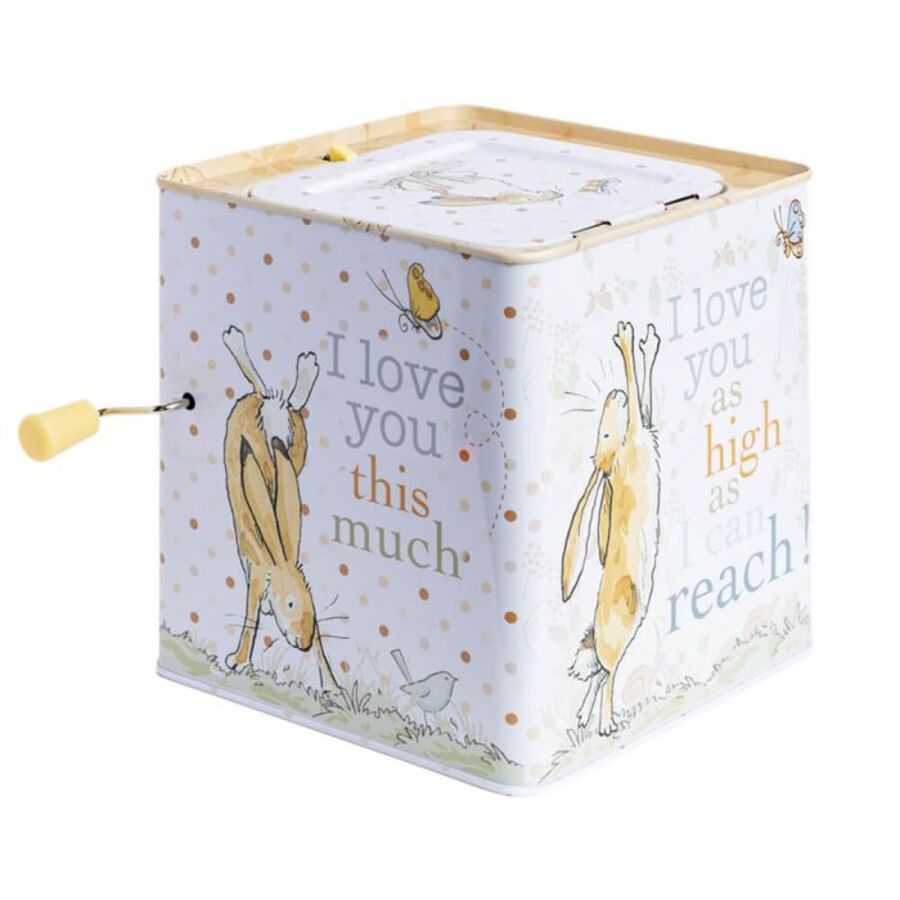 Guess How Much I Love You brings Little Nutbrown Hare to life in this gorgeous tin Jack-in-the-box. Wind the handle and you'll hear the familiar 'pop goes the weasel' tune before...POP! Bunny will spring out in all his cuteness.
