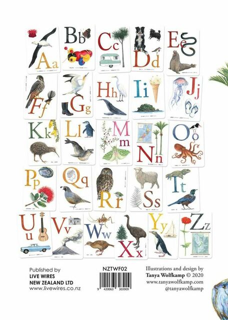 26 individual Te Reo ABC Frieze cards that can be displayed to suit any room. Each card features two beautiful illustrations by Tanya Wolfkamp with both Te Reo and English descriptions.