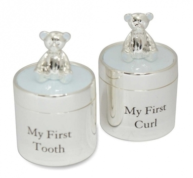 Teddy Bear "My First Tooth" and "My First Curl" round boxes.